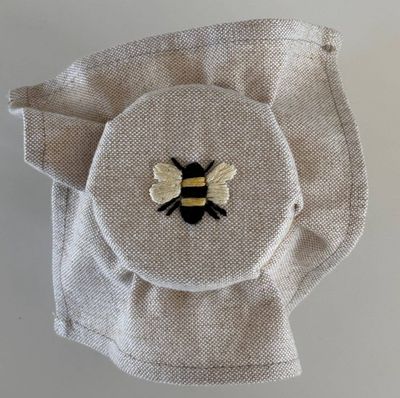 This delightful linen bee-themed, hand-embroidered jar cover is just what you need to lift your homemade gift into "Very Special" status! Whether you're gifting honey, preserves, jam, marmalade, or even a jar of buttons, add this, held in place with a rubber band, and you're sorted for that very special gift, oozing with homemade charm.